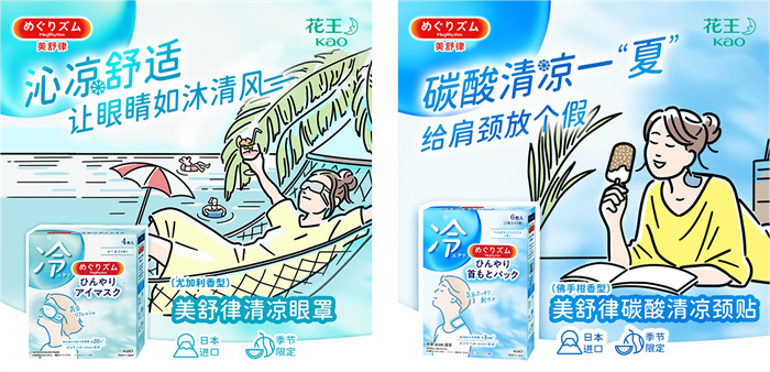 今夏,花王旗下舒缓治愈品牌“美舒律”特别推出夏季限定——“花王美舒律清凉眼罩”和“花王美舒律碳酸清凉颈贴”,让凉意如清泉浸润燥热时光,重拾夏日自在呼吸。
