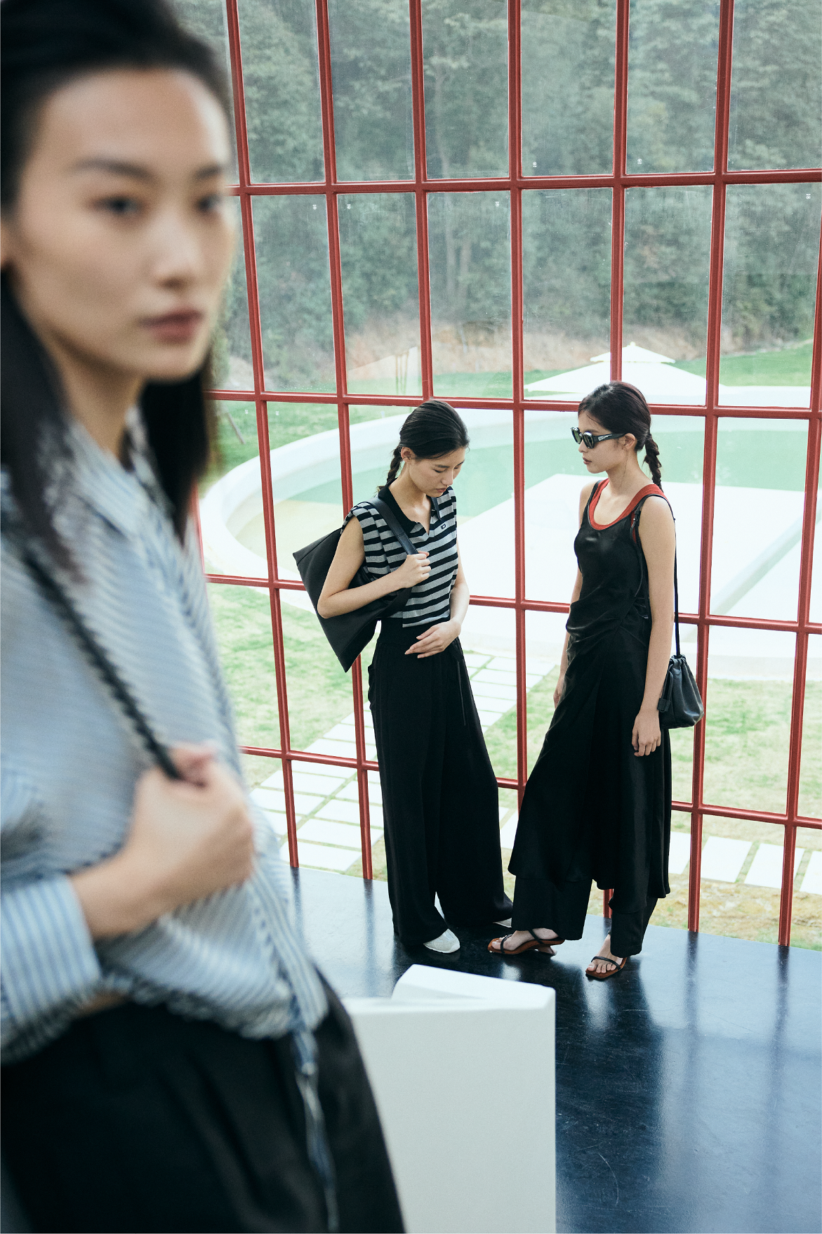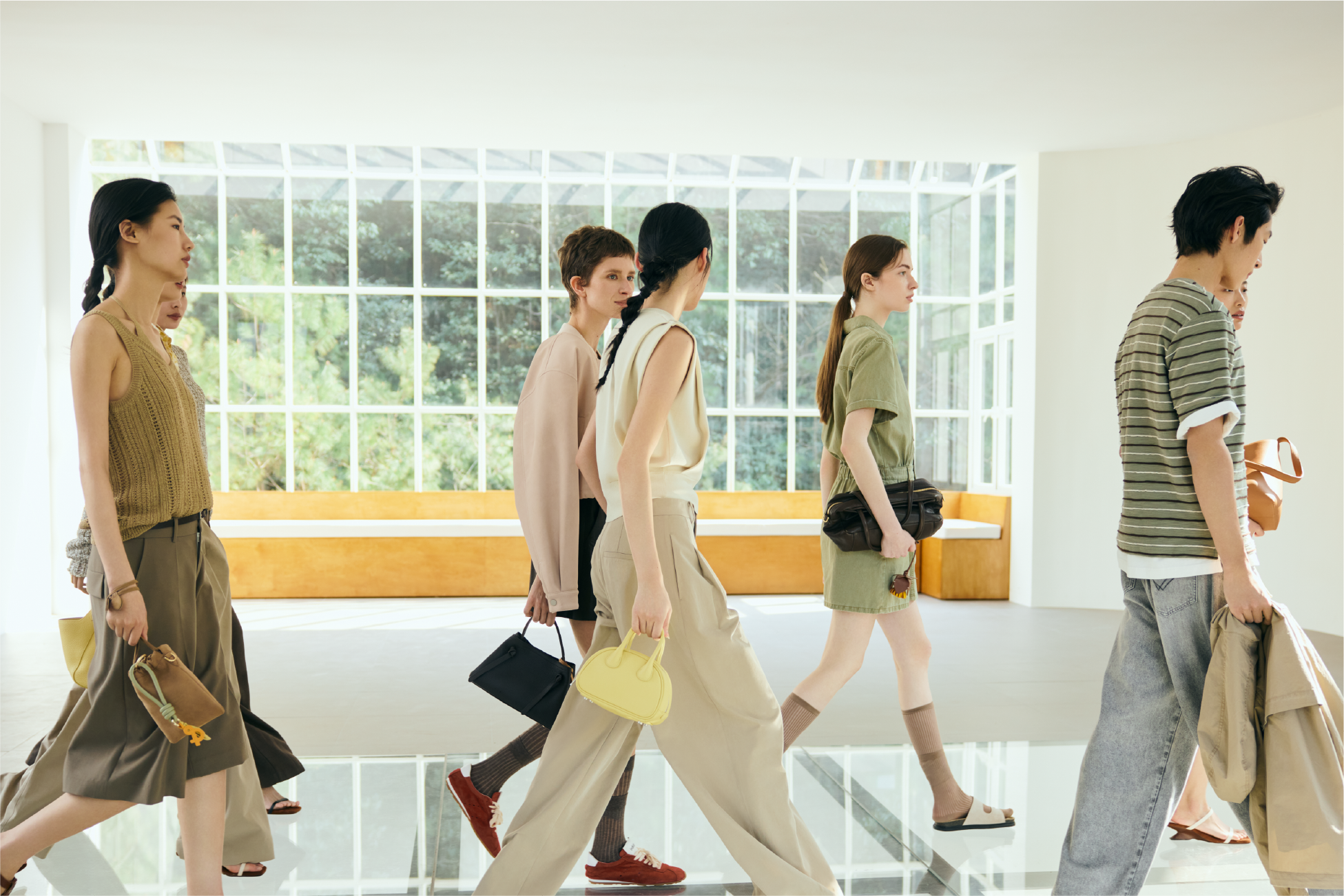 空间内,时尚梦境悄然铺展。新季时装在绿意间流动,阳光浸染身影,勾勒出灵动画卷。