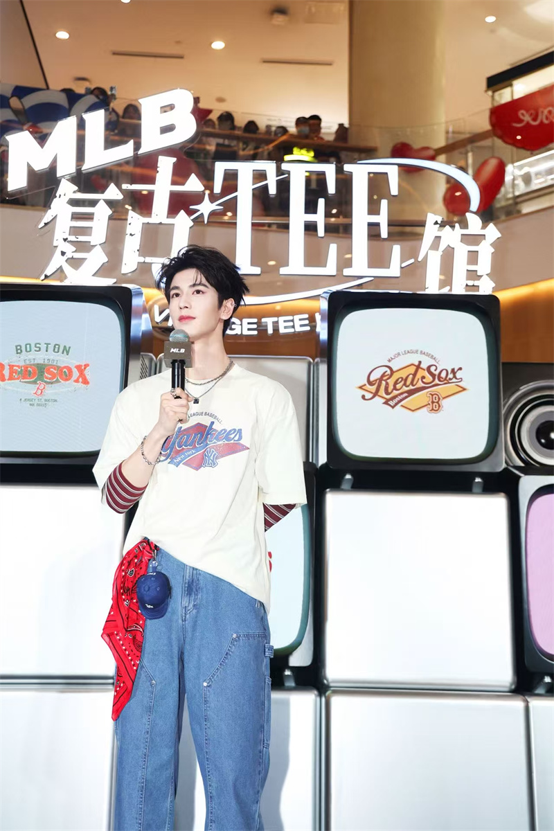 mlb潮流品牌代言人张凌赫现身复古tee馆活动现场