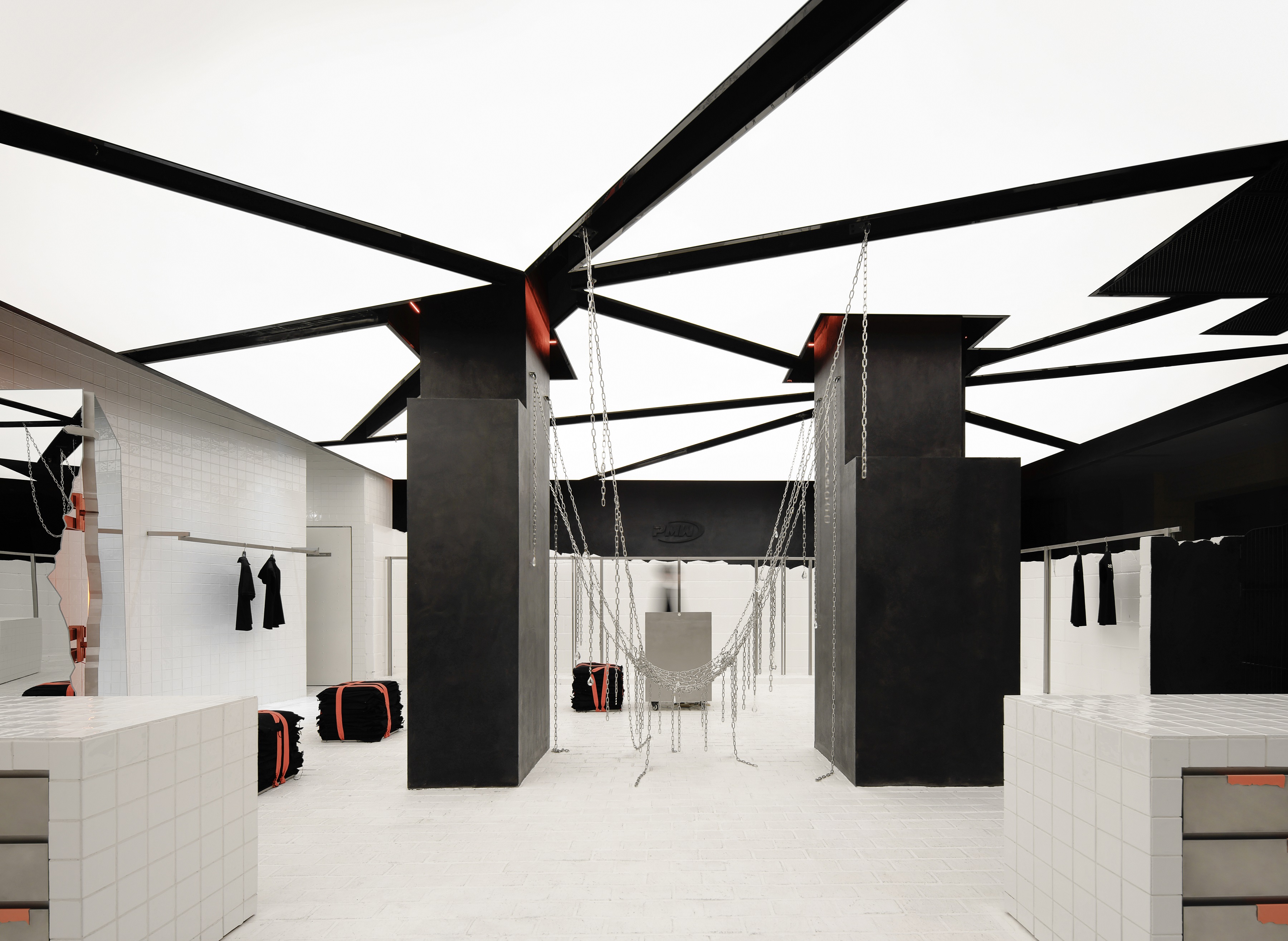 pmw 的杭州空间,完全不走寻常路。空间设计从「打破束缚,追求自由」出发,把嘻哈文化里的 “反骨dna” 全部搬进现实——