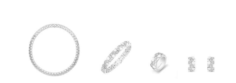 bee de chaumet系列融合拿破仑皇室蜜蜂徽记,以六边形蜂巢为结构灵感,象征个体在紧密连结的群体中彼此赋能、共同发光。无论是源自皇室图腾的蜜蜂造型项链,还是结构精巧的蜂巢戒指与手镯,皆以几何美学与自然意象呼应于适在舞台上迸发的能量——独立却不孤立,自信亦共融。