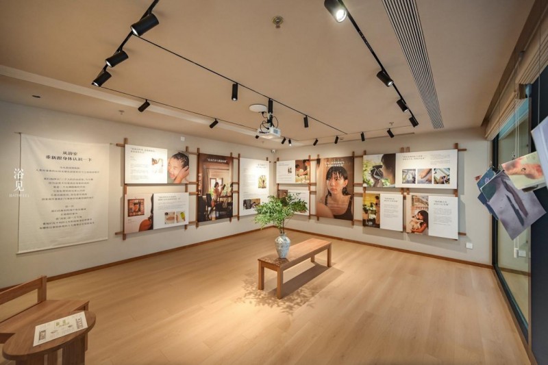同时,门店还体现了浴见独特的人文风格,人文展览中通过不同的人生故事与沐浴的关系,呈现品牌独特的人文表达。有28岁的创业者讲述自己的压力和孤独,以及如何在水汽中与孤独和解的故事。也有总在出差路上的34岁媒体人,将浴室作为自己流转⽣活中的恒定坐标,为奔波的⽣活注⼊⼀丝归属感。通过持续收集和分享这些真实的人生片段,浴见构建了一个关于身体、记忆与情感的叙事宝库。这些故事不仅呈现在线下空间,也通过品牌的自媒体内容与用户形成深度互动。