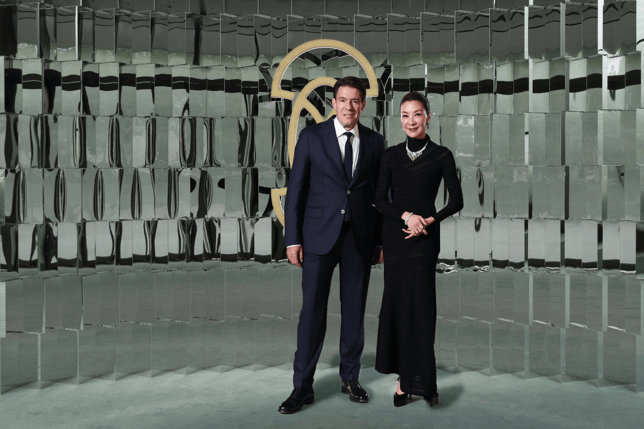 格拉夫全球行政总裁françois graff、董事总经理elliott graff、全球零售总监及亚洲区主席arnaud bastien、国际知名演员,奥斯卡最佳女主角杨紫琼女士、著名演员孙俪女士、乒乓球世界冠军,超级全满贯获得者马龙先生、流行音乐全能创作人,著名导演,演员王力宏先生及青年演员刘昊然先生齐聚西岸漩心orbit,出席展览开幕仪式,共同庆祝品牌这一重要里程碑,感受格拉夫对极致璀璨的不懈追求,于光耀时刻,璨启新章。
