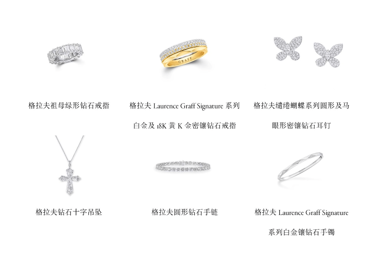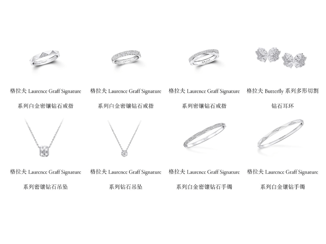 格拉夫标志性的现代作品:butterfly蝴蝶系列历经半世纪演变,至今仍不断焕发生机;tilda's bow系列灵感源自家族传承的亲缘纽带,尽显当代优雅;laurence graff signature系列以圆形明亮式切割钻石琢面为灵感,致敬劳伦斯・格拉夫obe在切割打磨稀世美钻方面的不朽传奇,wild flower系列以活泼明媚的主题风格演绎英式庭园的浪漫。