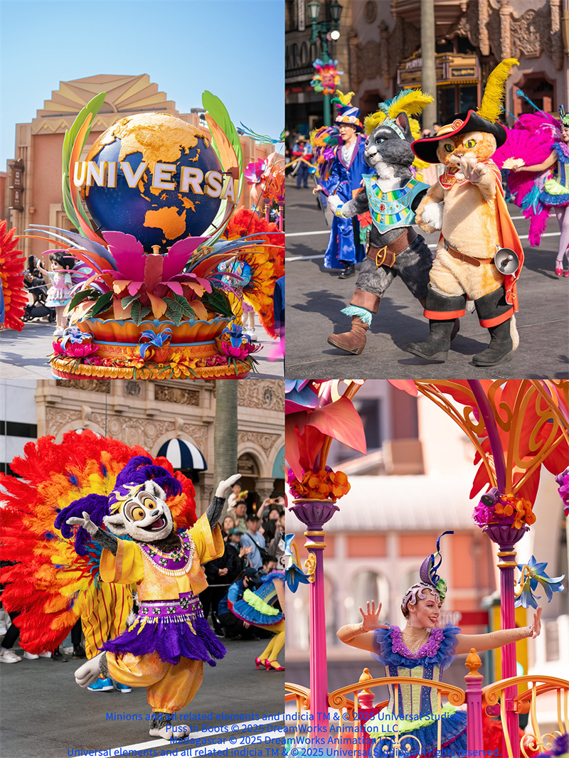 今年春日狂欢派对升级归来,当熟悉的旋律再度响起,包括穿靴子的猫和软爪吉蒂,阿历克斯、朱利安国王、歌莉娅,以及小黄人凯文、鲍勃和斯图尔特在内等十余位北京环球度假区明星角色,和数位身着多彩华服的舞者一起带来极具感染力的狂欢派对,为乐于表达自我、希望释放情绪的年轻人提供了新的舞台,并以燃动的节拍和充满能量的情绪,让每一位游客都能全情投入,在明媚春光中共舞。国际知名舞团malevo首度加盟,不仅为春日狂欢派对增添燃动活力,还带来了专属演出节奏狂想,融入打击乐、踢踏舞、鞭舞元素,用羊皮鼓奏响自由奔放的鼓点,点燃现场游客高能情绪。他们也加入了春日狂欢派对的舞蹈互动,带领游客舞动让游客进一步感受汲取自全球狂欢文化灵感的春日热情。高能量的表演形式点燃了现场游客的情绪,许多人情不自禁地跟随节奏摇摆,在带给游客热情的艺术享受的同时,满足唤醒春日的情绪价值。