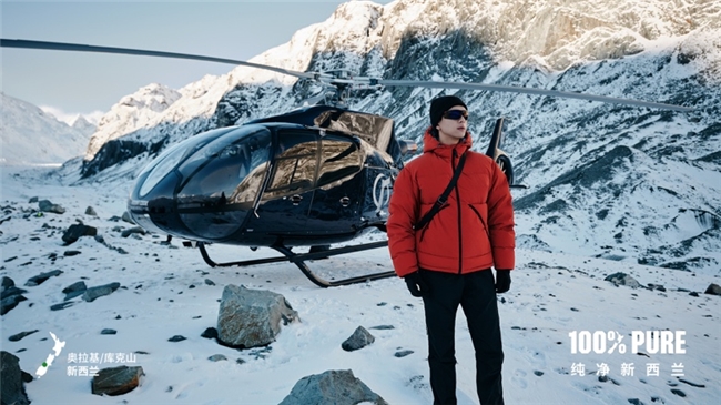 在这次特别的旅途中,李现深入新西兰的湖山之间、星空之下,完成了一场属于他自己的百分百纯净旅程。他在基督城雅芳河上与船员共同划行毛利战船,感受传统毛利文化与现代生活的交融;在约翰山天文台静静等待日落,直至星河渐显,见证南半球夜空的澄净与神秘;乘坐快艇穿梭于塔斯曼冰川湖的浮冰之间,近距离观察手中的晶莹碎冰,感受时间的永恒;更搭乘直升机抵达冰川,徒步行走于万年冰层之上,体会天地的辽阔。在普卡基湖,他沿着湖畔静静骑行,沉浸于湖光山色;也乘坐四驱越野,穿越牧场与原始地貌,在山顶俯瞰蒂卡普湖的静谧风光。每一段体验不仅展现出新西兰纯净、冒险与温暖共生的旅行魅力,也让李现与新西兰这片土地建立了深厚的情感连接。