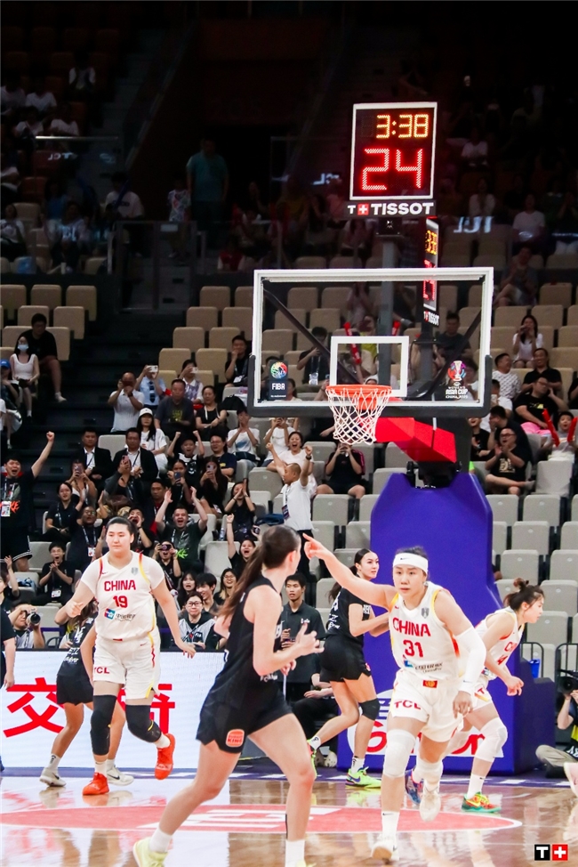 7月16日,中国队与新西兰队在深圳市体育中心体育馆展开对战。馆内气氛炽热,甫一开始,双方便陷入高强度缠斗,攻防转换间,球员身影飞驰,每一次拼抢都引得观众席惊呼阵阵。赛场宛如力量与意志的熔炉,观众的情绪随着一次次对抗而沸腾,共同沉浸在这场“铁血搏斗”之中。终场哨响,中国队力克强敌,以85比51的成绩战胜新西兰女篮,收获小组赛三连胜,成功晋级半决赛。刹那间,欢呼如山呼海啸般爆发,胜利的喜悦点燃了整座场馆的激情。
