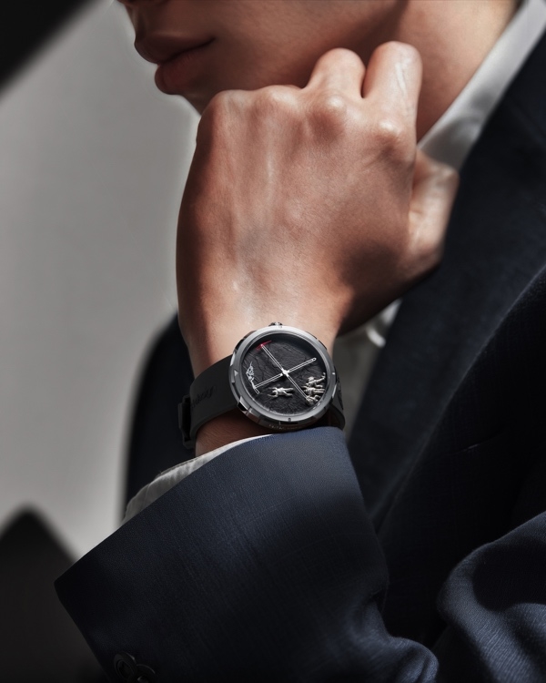 腕表采用「动态复刻」工艺,首次将中国登山队登顶珠峰的历史场景以动态机械形式呈现。表盘纹理萃取珠峰真实地貌肌理,通过精密机械结构,每日0点与12点,被托举的「登山者」会「登顶」,5分钟后回落原点,象征攀登精神周而复始、永不停息。每一次转动皆是对中国登山队探索未知、自我挑战,以及互助协作、奉献担当精神的礼赞,让精湛工艺与人文内涵在时间流转中相融。